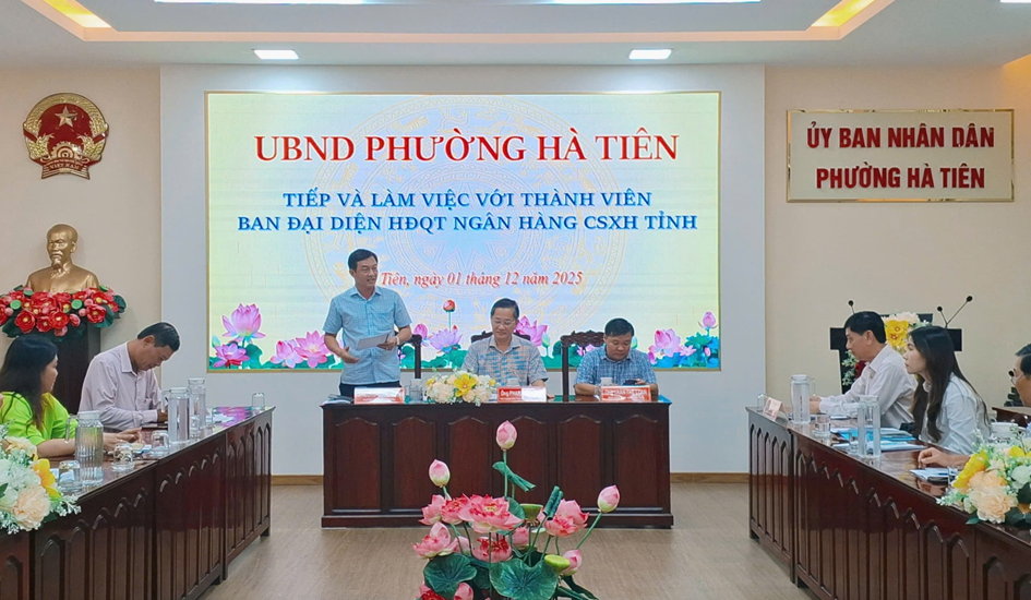 Trong thời gian qua, thực hiện chủ trương tăng cường kiểm tra, giám sát nhằm nâng cao hiệu quả hoạt động tín dụng chính sách xã hội, ngày 01/12/2025 Ông Phan Hoàng Vũ – Phó Chánh Văn phòng UBND tỉnh An Giang, Thành viên Ban đại diện HĐQT NHCSXH tỉnh An Giang, Trưởng Đoàn kiểm tra, giám sát đã dẫn đầu Đoàn kiểm tra, giám sát của Ban đại diện HĐQT NHCSXH tỉnh An Giang tổ chức làm việc, giám sát hoạt động tín dụng chính sách tại phường Hà Tiên.
