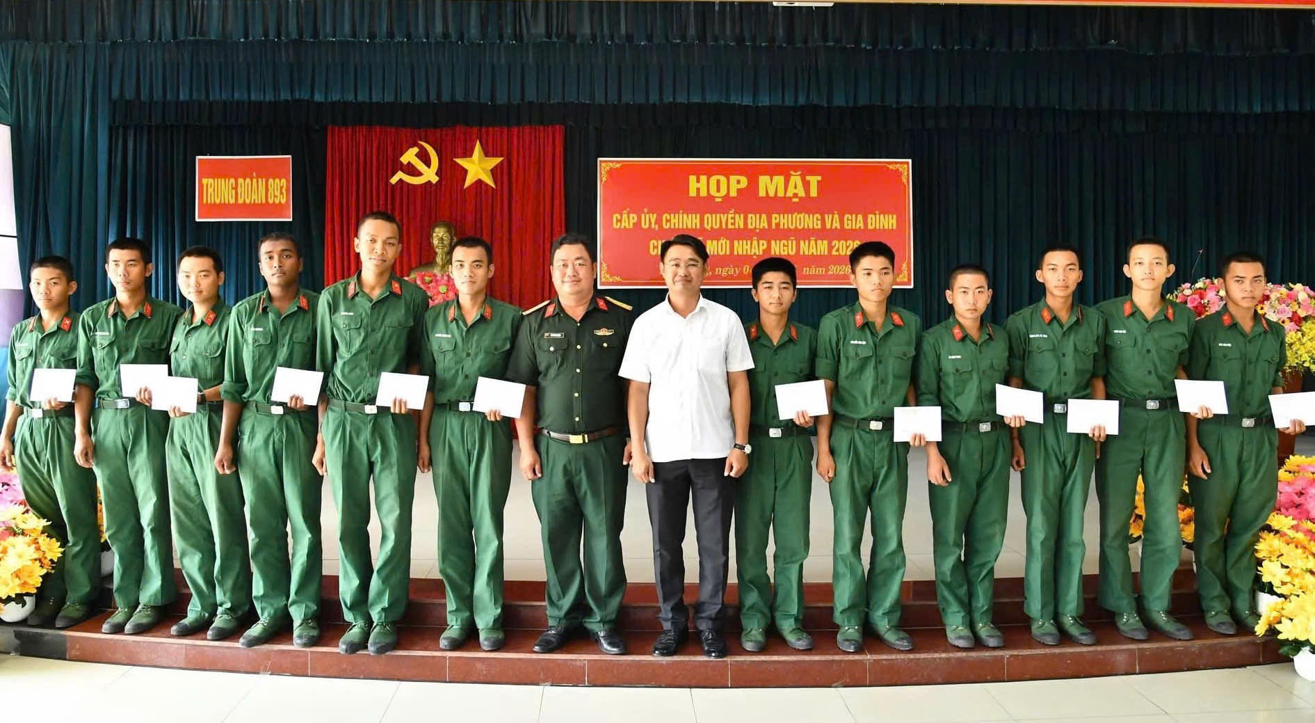 Ngày 4/4/2026, Đoàn công tác của Ủy ban nhân dân phường Hà Tiên do ông Phạm Khắc PhaRa, Phó Chủ tịch UBND phường làm trưởng đoàn đã đến dự họp mặt cấp ủy, chính quyền địa phương và gia đình chiến sĩ mới nhập ngũ năm 2026 tại tiểu đoàn 207, Trung đoàn 893. Tham gia cùng đoàn có đại diện lãnh đạo Ban chỉ huy quân sự phường và gia đình chiến sĩ mới.